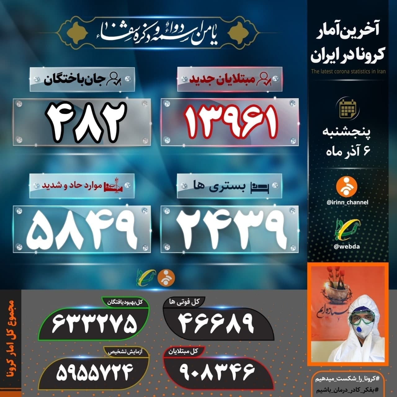 دکتر لاری سخنگوی وزارت بهداشت:استانهای تهران، اصفهان، قم، آذربایجان شرقی، خراسان جنوبی، سمنان، قزوین، لرستان، اردبیل، خوزستان، کرمانشاه، کهگیلویه و بویراحمد، گیلان، بوشهر، زنجان، ایلام، خراسان رضوی، مازندران، چهارمحال و بختیاری، البرز، آذربایجان غربی، مرکزی، کرمان، خراسان شمالی، همدان، یزد و کردستان در وضعیت قرمز قرار دارند. استانهای هرمزگان، فارس، گلستان و سیستان و بلوچستان نیز در وضعیت نارنجی و زرد قرار دارند.