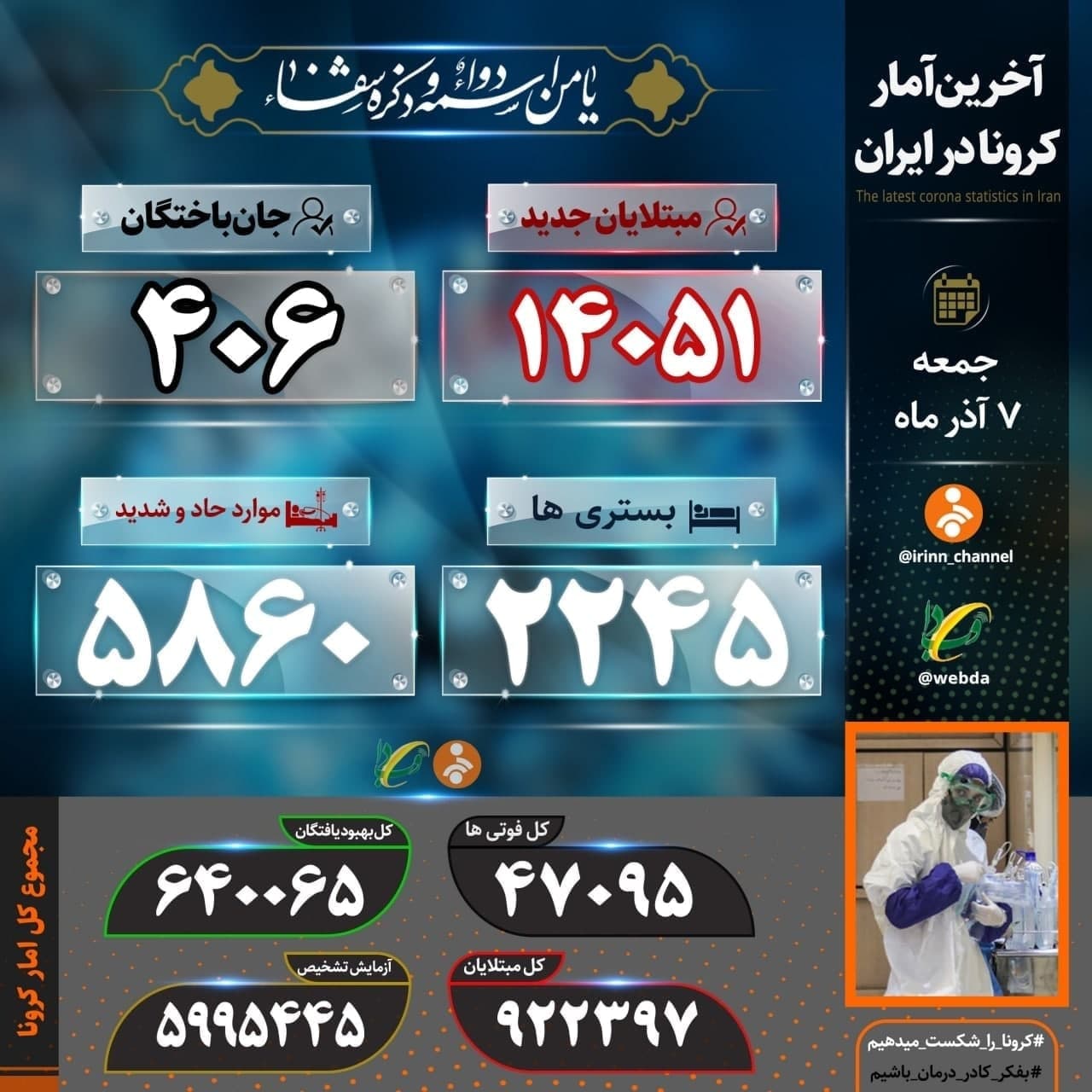 دکتر لاری سخنگوی وزارت بهداشت: استانهای تهران، اصفهان، قم، آذربایجان شرقی، خراسان جنوبی، سمنان، قزوین، لرستان، اردبیل، خوزستان، کرمانشاه، کهگیلویه و بویراحمد، گیلان، بوشهر، زنجان، ایلام، خراسان رضوی، مازندران، چهارمحال و بختیاری، البرز، آذربایجان غربی، مرکزی، کرمان، خراسان شمالی، همدان، یزد و کردستان در وضعیت قرمز قرار دارند.استانهای هرمزگان، فارس، گلستان و سیستان و بلوچستان نیز در وضعیت نارنجی و زرد قرار دارند.