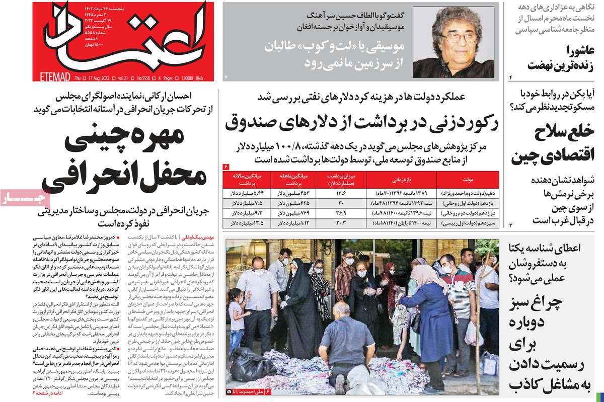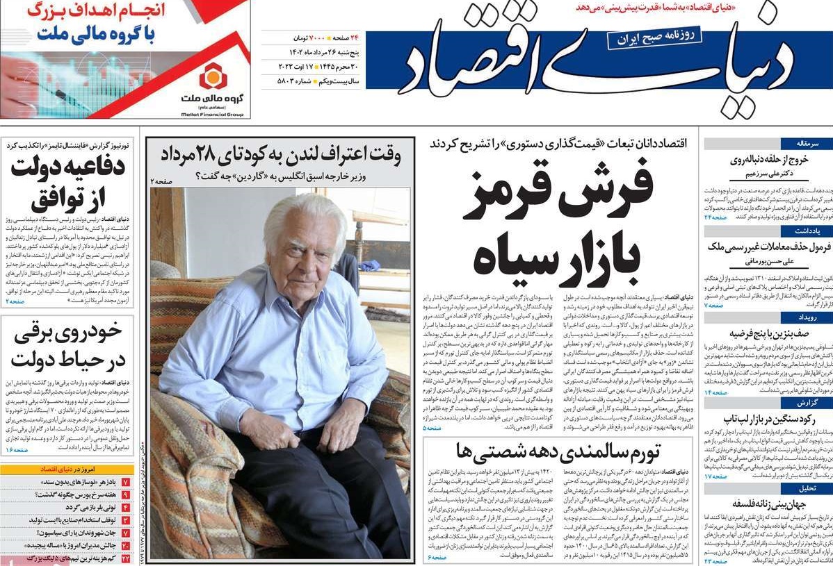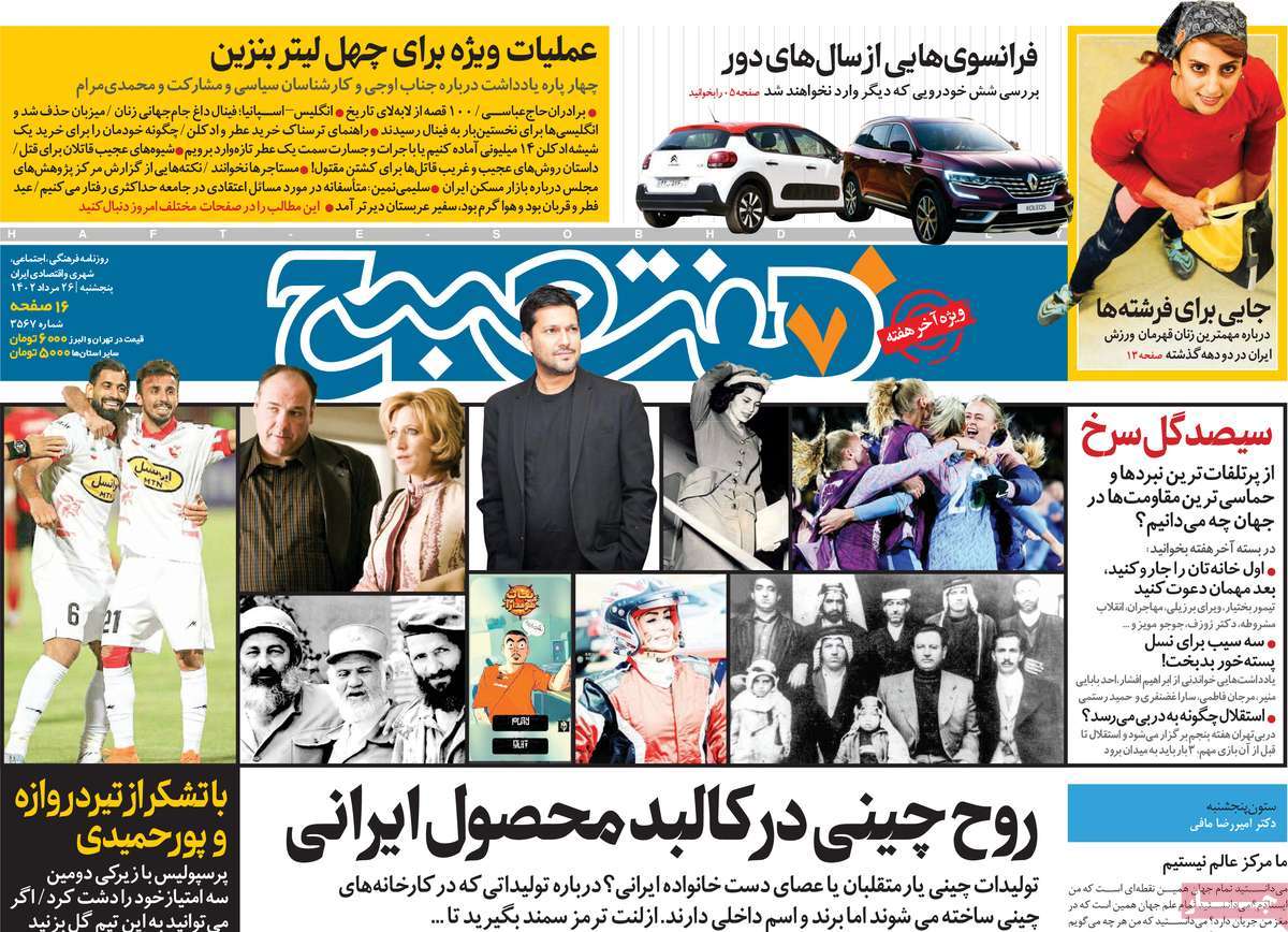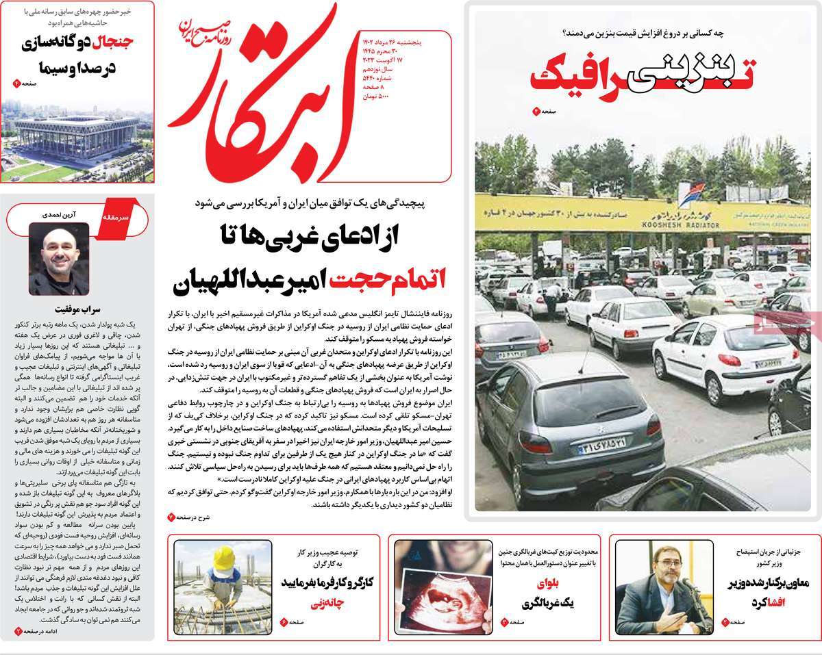 تصاویر صفحه اول روزنامه های امروز پنج شنبه 26 مرداد ماه .