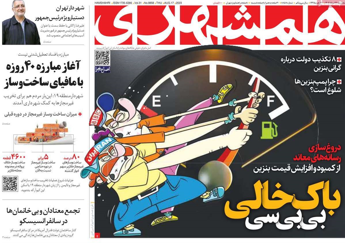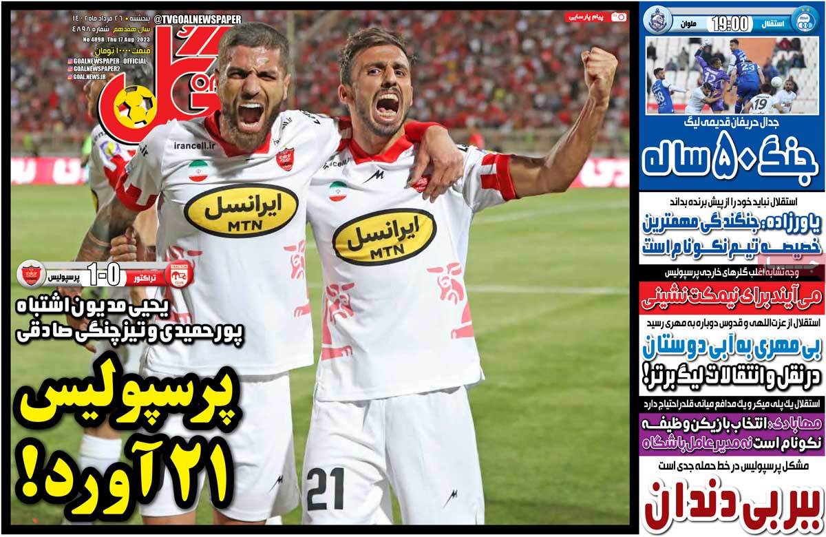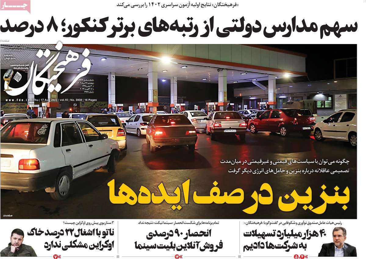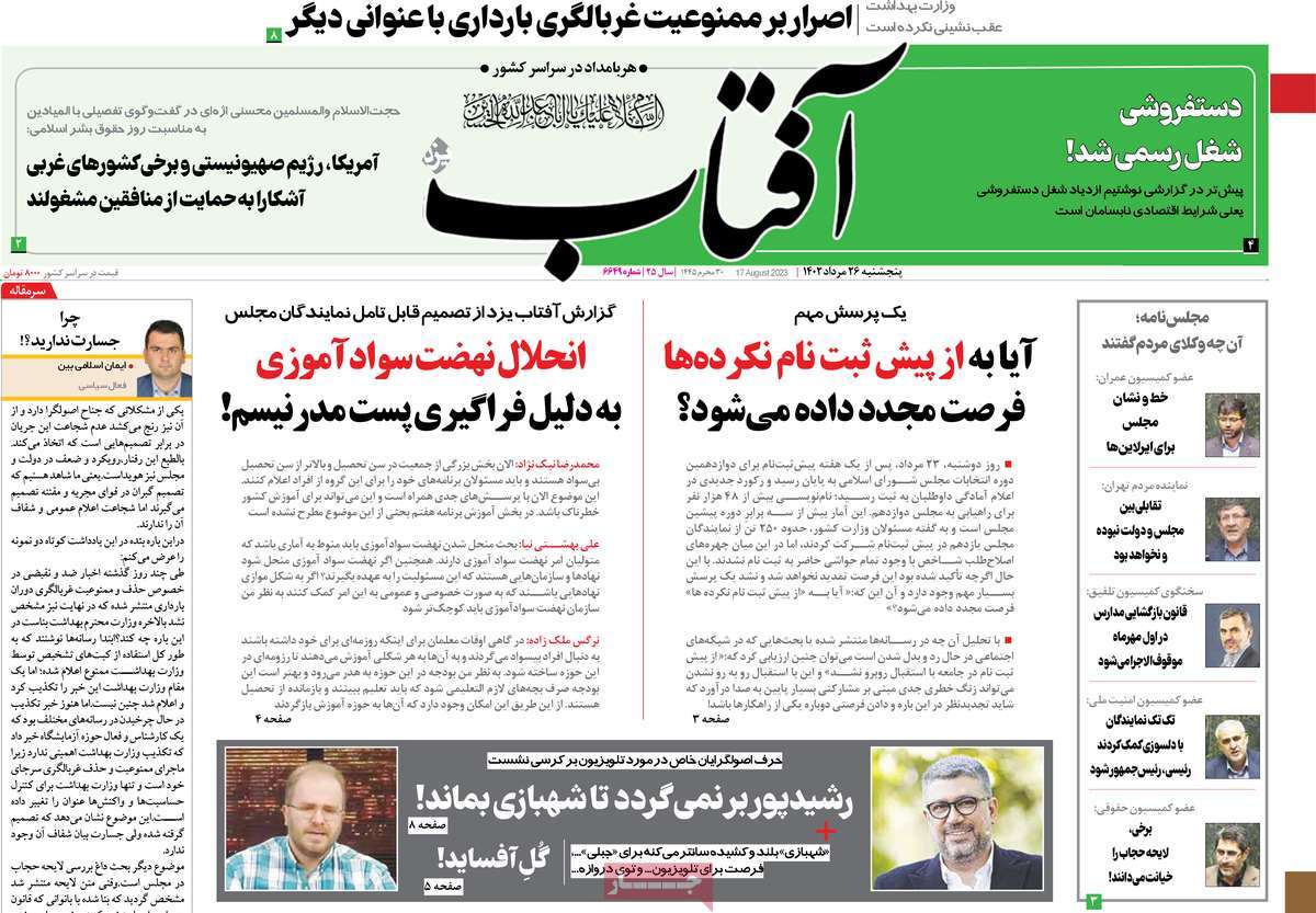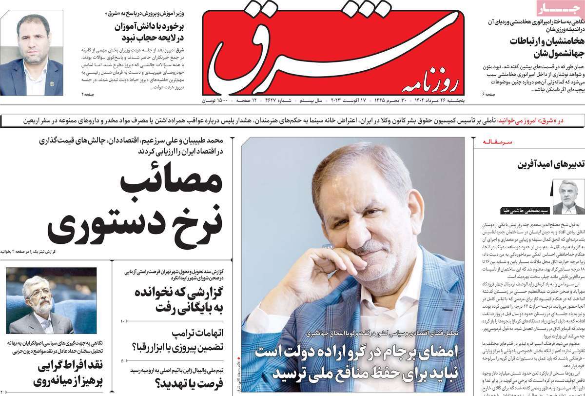 تصاویر صفحه اول روزنامه های امروز پنج شنبه 26 مرداد ماه .